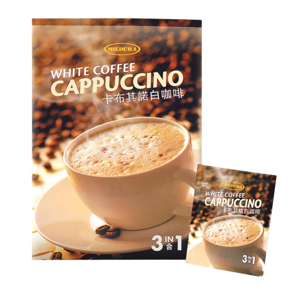 Mildura選用來自馬來西亞的白咖啡,配合意式泡沫,口感更顯幼滑,沖出獨特風味,讓您安在家中享受咖啡店風味的卡布其諾白咖啡。